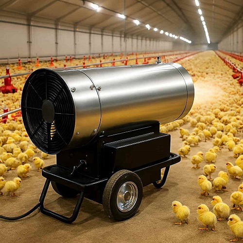 در مرغداری ها نیز این سیستم ها جایگزینی ایمن و اقتصادی برای بخاری های قدیمی محسوب می شوند. پرندگان در دوره ی رشد اولیه بسیار نسبت به تغییرات دما حساس اند، بنابر این وجود منبع حرارتی مطمئن با پخش یکنواخت گرما ضروری است. دستگاه های جدید با سنسور کنترل شعله، فن کم صدا و قابلیت تنظیم حرارت خودکار، محیطی ایده آل برای جوجه ها فراهم میکنند. علاوه بر این، مصرف گاز کمتر و هزینه نگهداری پایین تر باعث شده که در بیشتر واحد های پرورش طیور، این نوع تجهیزات به گزینه ی اول تبدیل شوند.